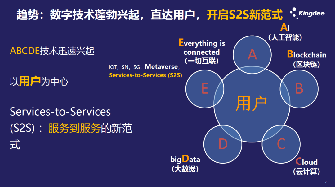 作為數(shù)字經(jīng)濟(jì)本質(zhì)的數(shù)字服務(wù)化的第二個(gè)維度是服務(wù)化。服務(wù)是有專門的術(shù)語解釋的,它是消費(fèi)者與提供者之間通過一系列的互動(dòng)來提供解決方案或創(chuàng)造價(jià)值的。把數(shù)字和服務(wù)化組合在一起,就構(gòu)成了數(shù)字經(jīng)濟(jì)的本質(zhì),就是數(shù)字服務(wù)化。在數(shù)字經(jīng)濟(jì)發(fā)展的過程中,我們正在經(jīng)歷的數(shù)字經(jīng)濟(jì)2.0時(shí)代以云計(jì)算為基礎(chǔ)設(shè)施,未來20年將以區(qū)塊鏈、元宇宙為基礎(chǔ)設(shè)施,他們中間會(huì)共享一個(gè)核心的基石,那就是服務(wù)到服務(wù)的一種新范式,因?yàn)樵朴?jì)算會(huì)逐漸成為各種服務(wù)組合的平臺(tái)和交互的平臺(tái)。而在區(qū)塊鏈和元宇宙當(dāng)中,幾乎所有的業(yè)務(wù)場景都會(huì)以服務(wù)的方式在線,5G更不用說,5G的核心架構(gòu)也是基于服務(wù)為導(dǎo)向的,所以整個(gè)的基礎(chǔ)設(shè)施都會(huì)成為一種服務(wù)到服務(wù)的新范式,即S2S,這也是連接數(shù)字經(jīng)濟(jì)2.0和數(shù)字經(jīng)濟(jì)3.0無縫的橋梁。