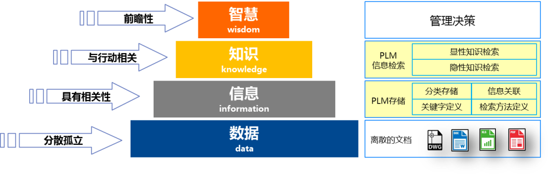 通過對以上數(shù)據(jù)的搜集,將數(shù)據(jù)轉(zhuǎn)化為結(jié)構(gòu)化信息,以便能夠快速查詢到歷史經(jīng)驗數(shù)據(jù),使其成為新產(chǎn)品研發(fā)的知識基礎,并提出管理上的變革,最終轉(zhuǎn)化為新產(chǎn)品研發(fā)的智慧: